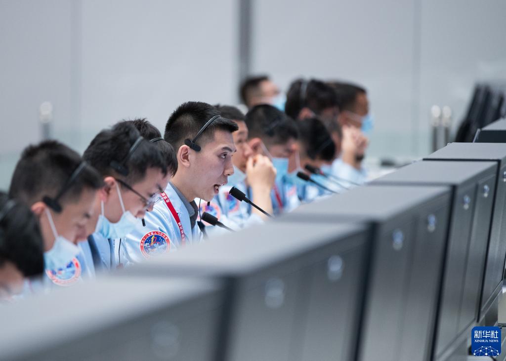 在北京航天飛行控制中心,科研人員在監(jiān)測(cè)神舟十二號(hào)載人飛船與天和核心艙自主快速交會(huì)對(duì)接情況(6月17日攝)。新華社記者 金立旺 攝