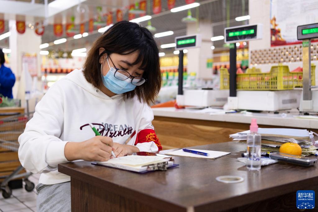 在哈爾濱市巴彥縣一大型超市,超市工作人員周廣美在接收居民的線上訂單(9月27日攝)。
