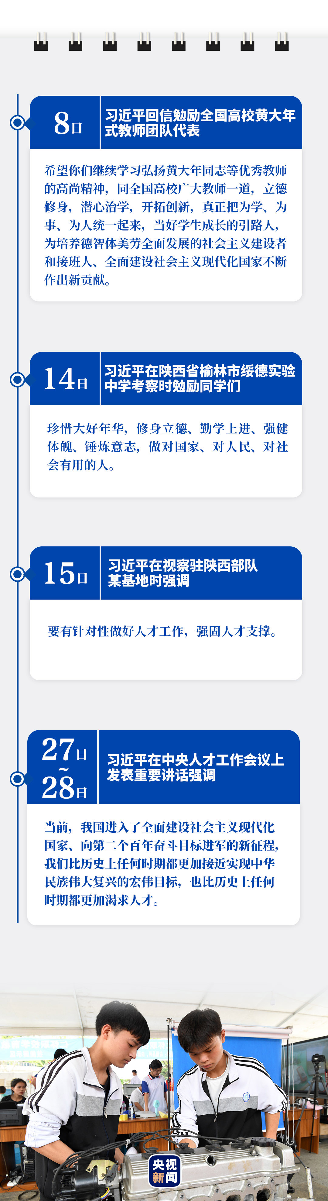 剛剛過去的9月,給人民英雄敬獻花籃,緬懷英烈、表達哀思;赴革命舊址考察,強調(diào)堅守信仰、堅定信念;出席重要會議,擘畫為黨育人、為國育才;開展多次“云外交”活動,主張講信修睦、合作共贏……習(xí)近平行程滿滿,話語鏗鏘。