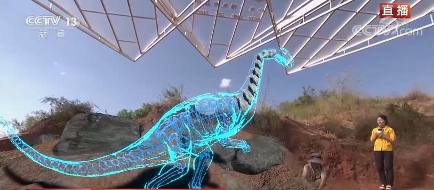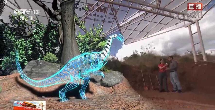 為了能夠更好地呈現(xiàn)科學(xué)發(fā)現(xiàn)的細節(jié),也為了讓您更能身臨其境感受侏羅紀(jì)世界,我們在前方也特別搭建了沉浸式混合現(xiàn)實系統(tǒng),在科考現(xiàn)場就能實時看到根據(jù)骨骼化石復(fù)原的恐龍模樣,實現(xiàn)野外互動直播。一眼穿越億萬年。