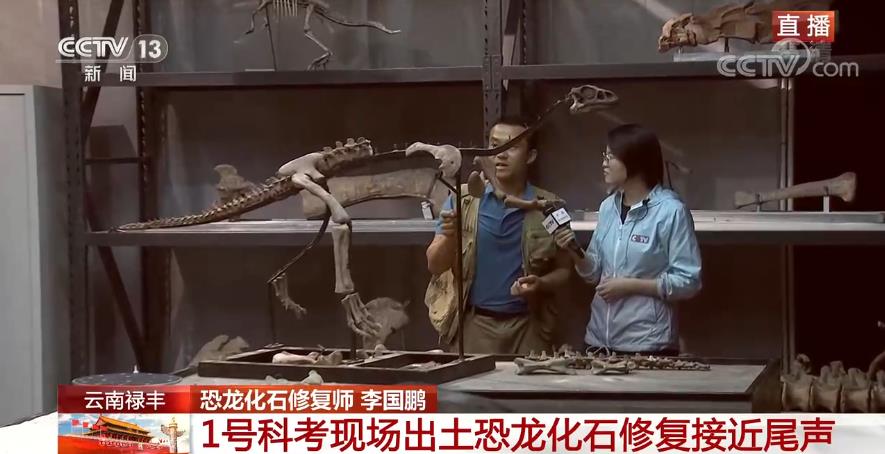 目前2號科考現(xiàn)場的恐龍化石骨架,整體面貌已經(jīng)顯現(xiàn),那之前出土的1號科考現(xiàn)場的恐龍化石修復(fù)工作進行到哪一階段了?來連線正在恐龍化石修復(fù)中心的總臺央視記者張藝瑾。