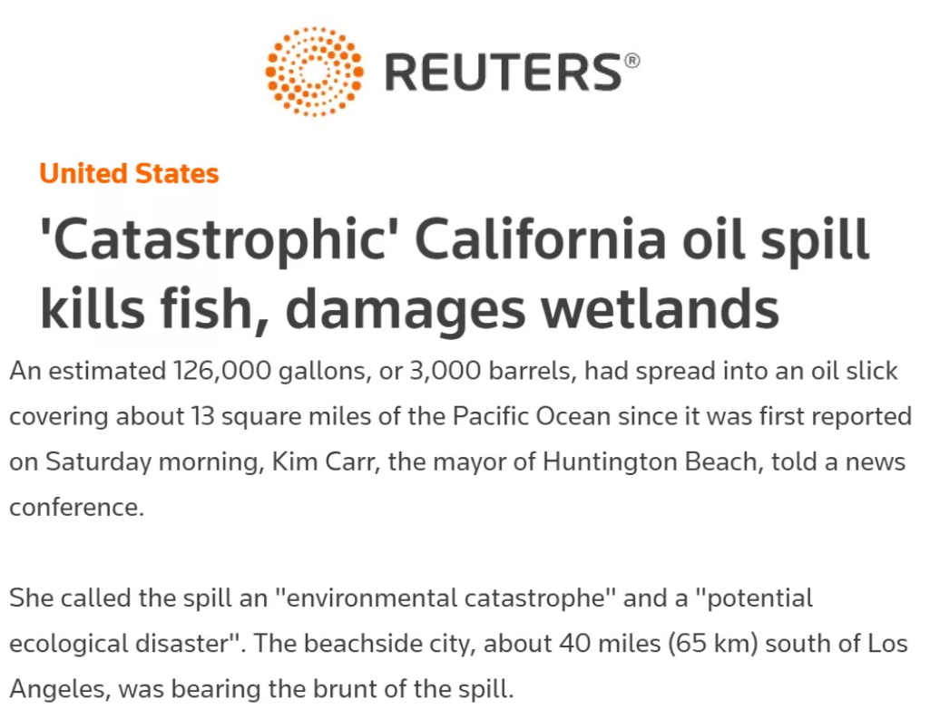 環(huán)球深觀察丨瞞報(bào)24小時(shí)?美國(guó)加州原油泄漏事故應(yīng)對(duì)不力暴露了啥
