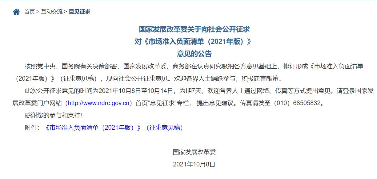 中新網(wǎng)10月9日電 據(jù)國(guó)家發(fā)改委網(wǎng)站消息,國(guó)家發(fā)改委8日就《市場(chǎng)準(zhǔn)入負(fù)面清單(2021年版)》向社會(huì)公開(kāi)征求意見(jiàn)。征求意見(jiàn)稿提及,禁止違規(guī)開(kāi)展新聞傳媒相關(guān)業(yè)務(wù)。