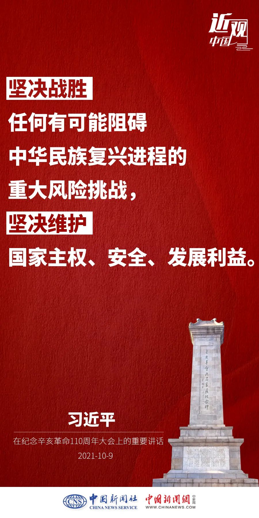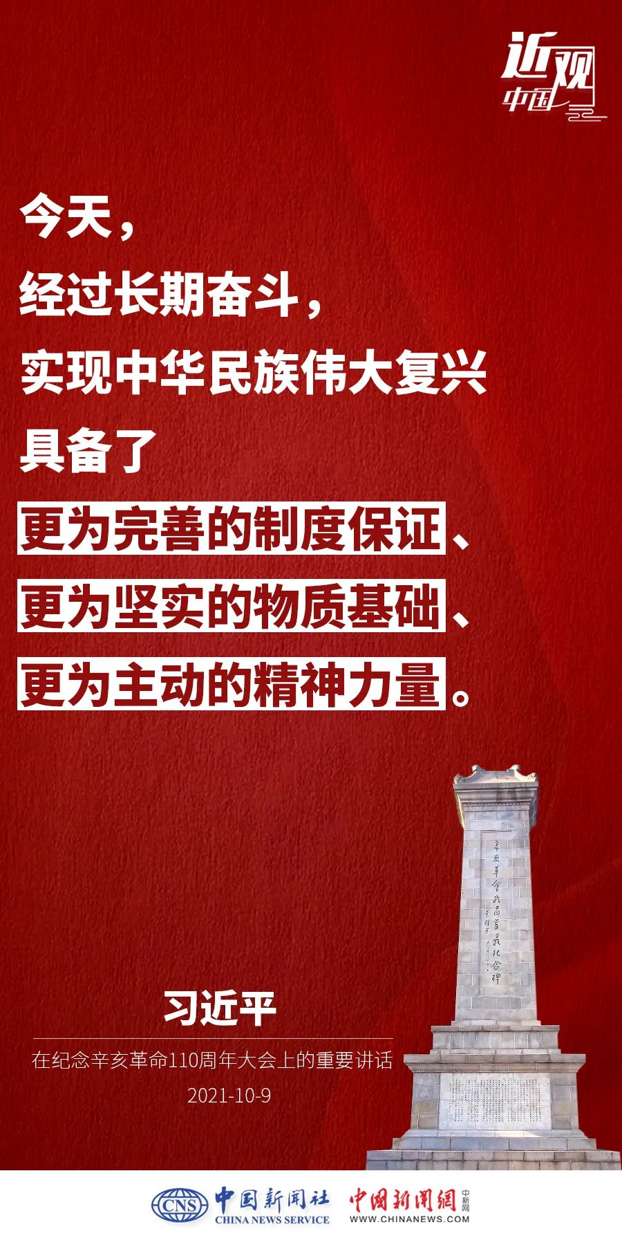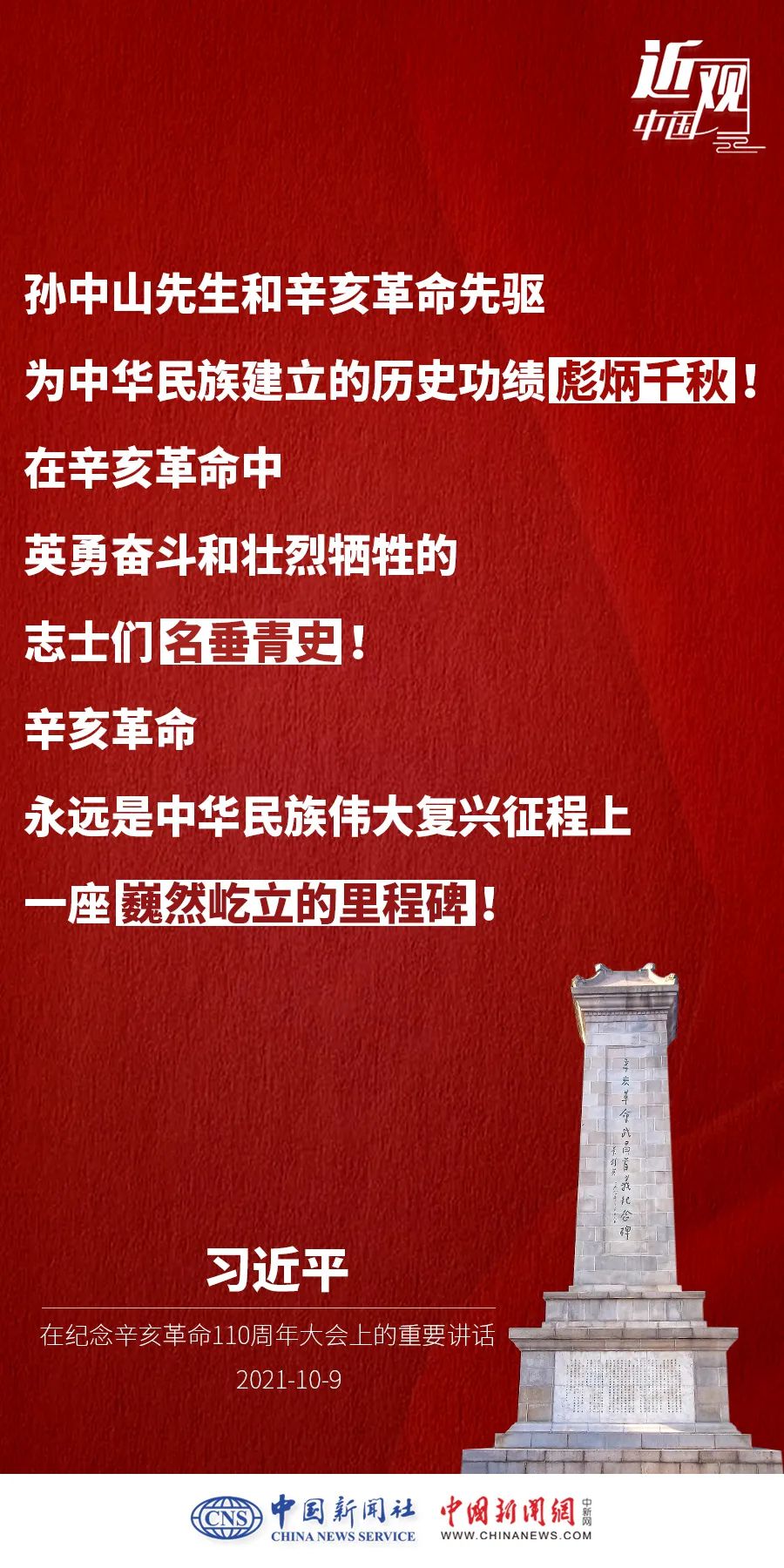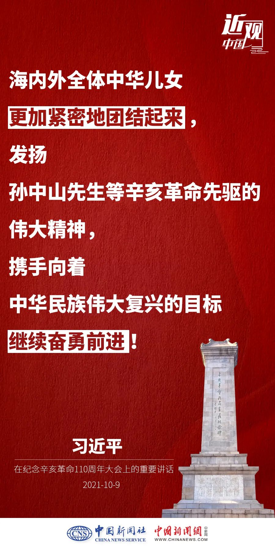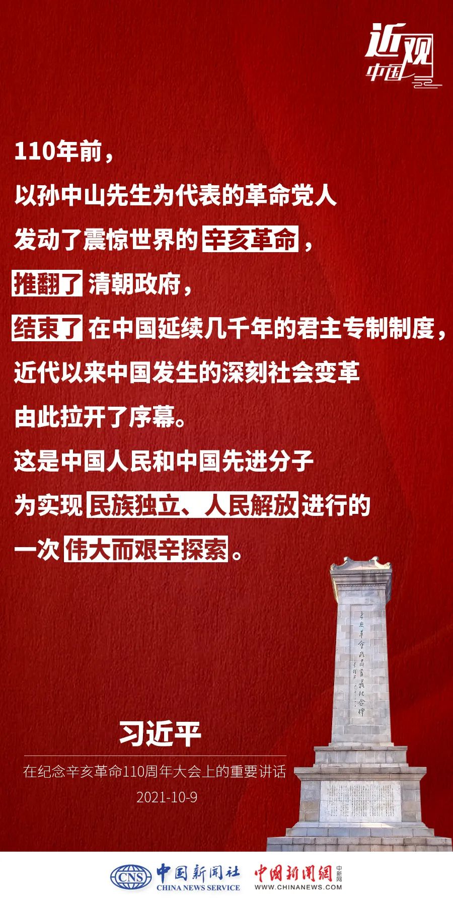 紀(jì)念辛亥革命110周年大會(huì)10月9日舉行,中共中央總書記、國(guó)家主席、中央軍委主席習(xí)近平出席并發(fā)表重要講話。他強(qiáng)調(diào)——