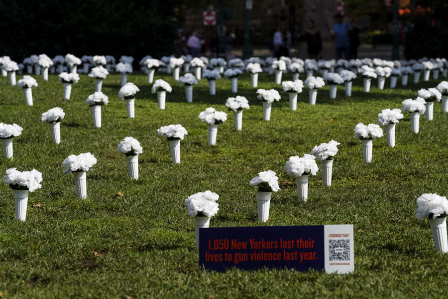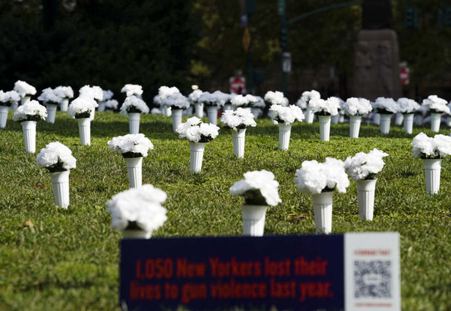 全球連線 丨 美國紐約:白色瓶花悼念槍支暴力遇難者