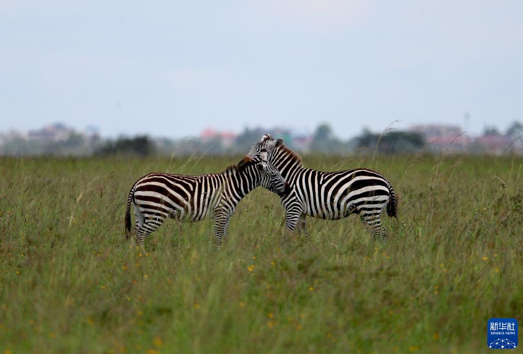 這是2021年5月19日在肯尼亞內(nèi)羅畢國(guó)家公園內(nèi)拍攝的斑馬。新華社記者 龍雷 攝