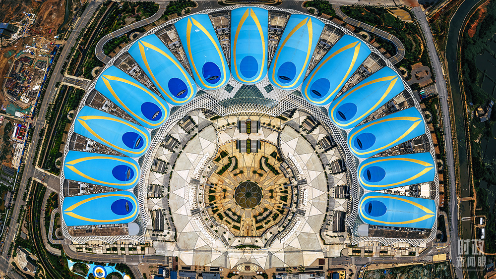 △昆明滇池國(guó)際會(huì)展中心以“孔雀翎羽”為設(shè)計(jì)概念!渡锒鄻有怨s》第十五次締約方大會(huì)就在這里舉行。(圖/視覺(jué)中國(guó))