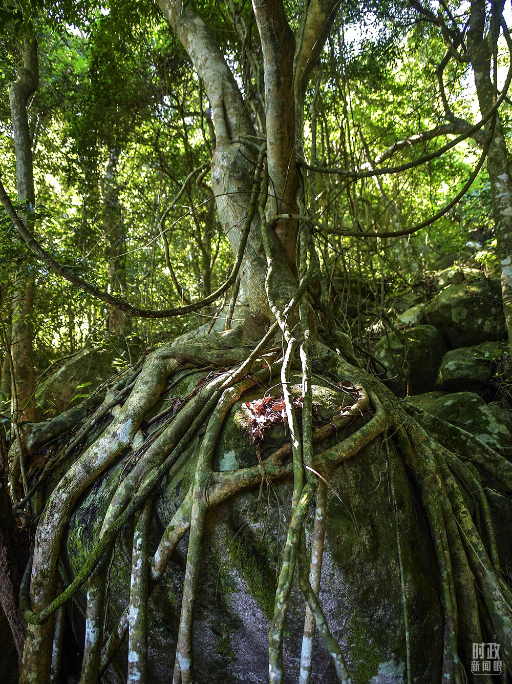 △海南霸王嶺自然保護(hù)區(qū),熱帶雨林中的“根抱石”現(xiàn)象。(圖/視覺(jué)中國(guó))