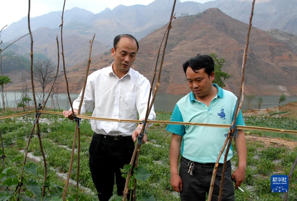 姜仕坤(左)在貴州晴隆縣長(zhǎng)流鄉(xiāng)與村民交流(資料照片)。