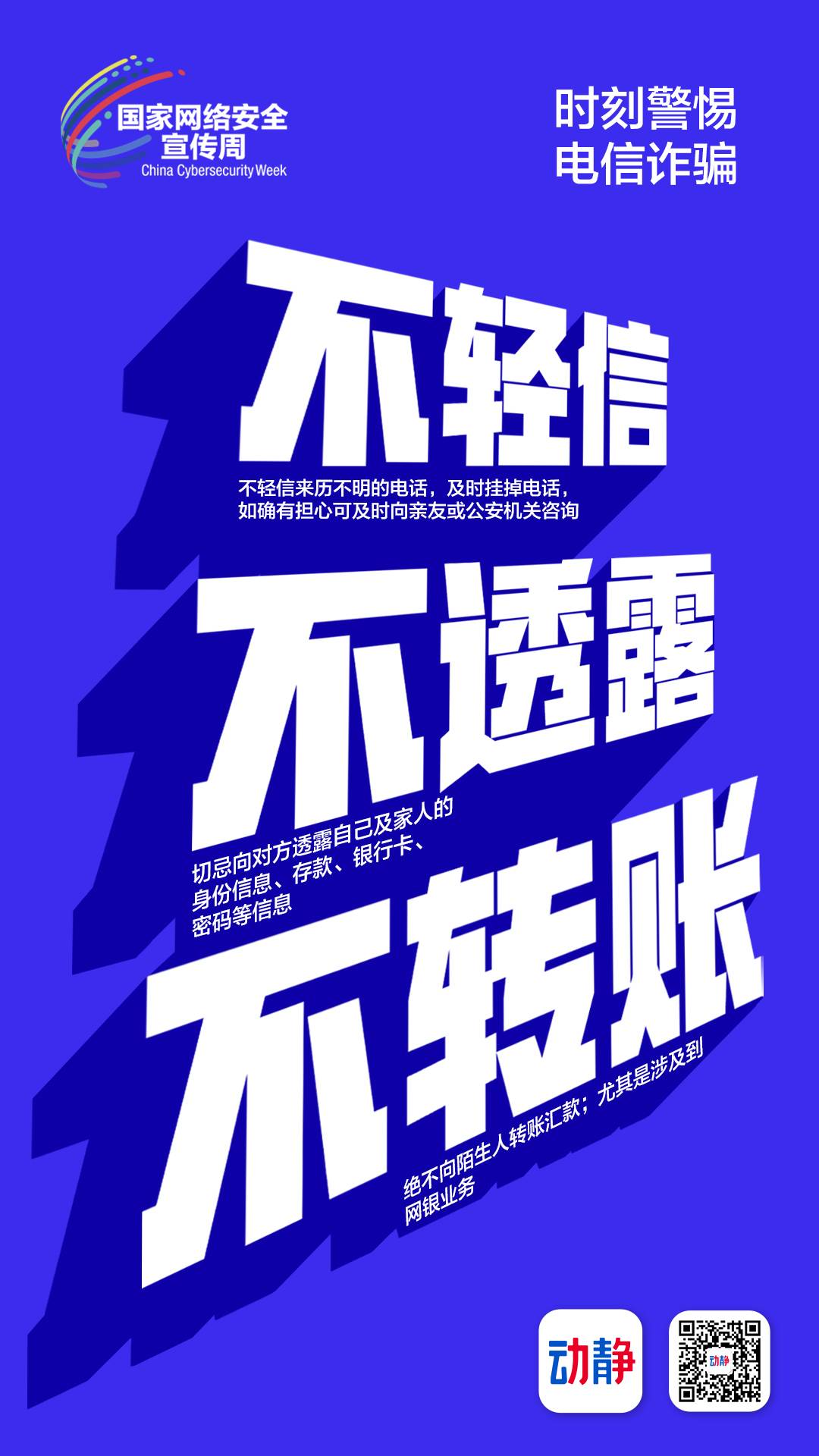 網(wǎng)絡(luò)安全宣傳周丨不輕信,不透露,不轉(zhuǎn)賬!這里有份溫馨提示
