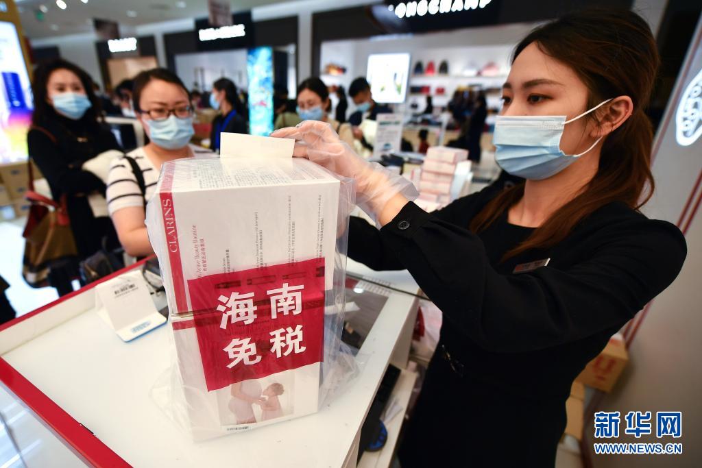 3月25日,消費者在?谌赵聫V場免稅店購物。新華社記者 張麗蕓 攝