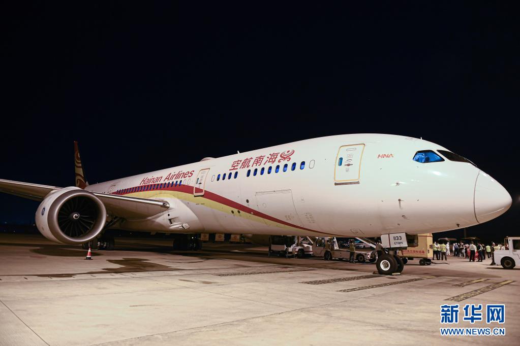 這是3月26日在海口美蘭國際機場拍攝的海南航空HU787航班。3月27日凌晨,該航班搭載貨物從?陲w往法國巴黎,海南自貿(mào)港首條定期洲際貨運航線正式開通。新華社記者 蒲曉旭 攝