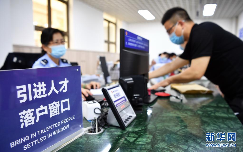 4月2日,外省人員在?谑泄簿置捞m分局人口和出入境管理服務(wù)中心辦理引進人才落戶業(yè)務(wù)。新華社記者 郭程 攝