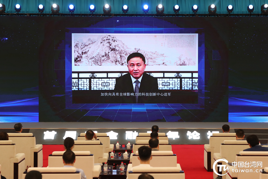 2021年10月15日,首屆新金融青年論壇在上海舉行。圖為上海市委常委、副市長(zhǎng)吳清發(fā)表視頻致辭。中新社記者 張亨偉 攝