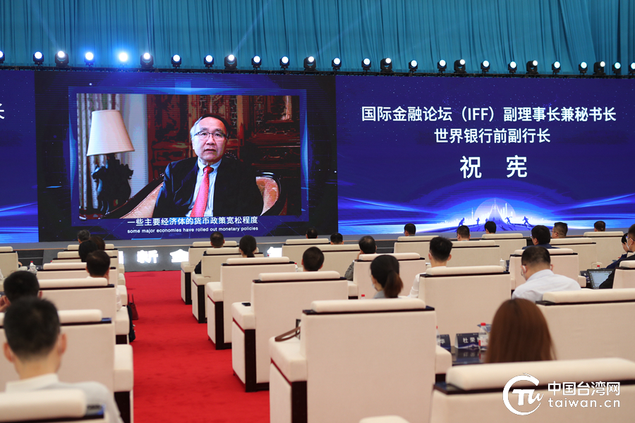 2021年10月15日,首屆新金融青年論壇在上海舉行。圖為國(guó)際金融論壇(IFF)副理事長(zhǎng)兼秘書長(zhǎng)、世界銀行前副行長(zhǎng)祝憲發(fā)表寄語。中新社記者 張亨偉 攝