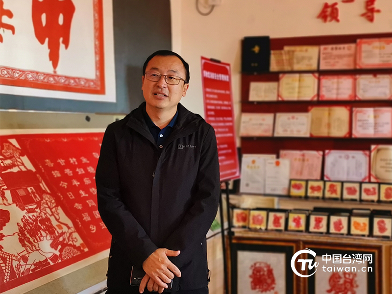 達(dá)拉特旗樹林召鎮(zhèn)黨委副書記,政府鎮(zhèn)長喬有世介紹了“鄉(xiāng)村振興學(xué)院”的情況。(中國臺(tái)灣網(wǎng) 李杰 攝)