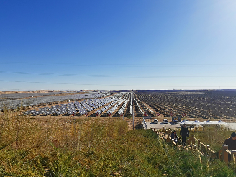 達(dá)拉特旗發(fā)改委副主任王小徑介紹說,這里是內(nèi)蒙古自治區(qū)唯一的國家第三批光伏發(fā)電應(yīng)用領(lǐng)跑基地和獎(jiǎng)勵(lì)激勵(lì)基地。2020年發(fā)電量達(dá)9.92億度、發(fā)電小時(shí)數(shù)達(dá)1983小時(shí);匾(guī)劃建設(shè)過程中,始終把生態(tài)優(yōu)先、綠色發(fā)展作為根示遵循,在開發(fā)利用庫布其沙漠能資源的同時(shí),采用“林光互補(bǔ)”建設(shè)模式,推動(dòng)沙漠生態(tài)治理、現(xiàn)代能源經(jīng)濟(jì)、沙漠農(nóng)林牧業(yè)、沙漠風(fēng)情旅游多產(chǎn)業(yè)融合發(fā)展。