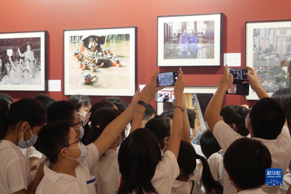 “今天看到很多我們在香港從小都沒見過的照片,感到既好奇又興奮。這些照片記錄了從一窮二白的年代,人民是如何不停地努力奮斗才把國家變成現(xiàn)在這么富強繁榮的。每個時代的生活點滴都有圖片記憶,太珍貴了!毕愀矍嗄昱司钜辉绫闩c朋友來到展覽現(xiàn)場,認真聆聽導賞員講解每一幅照片。