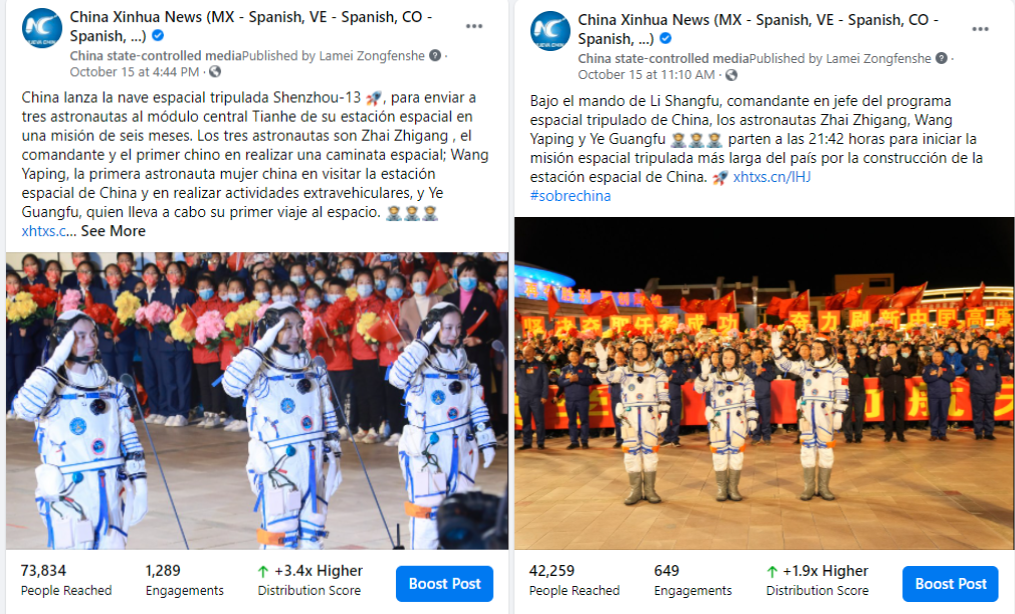 新華社西班牙語海外社交媒體賬號(hào)當(dāng)天發(fā)布“神十三”圓滿發(fā)射的消息后,立刻獲得了廣大拉美網(wǎng)友的點(diǎn)贊和祝賀。截至目前,相關(guān)稿件總瀏覽量已突破20萬,總點(diǎn)贊量超過3500次。