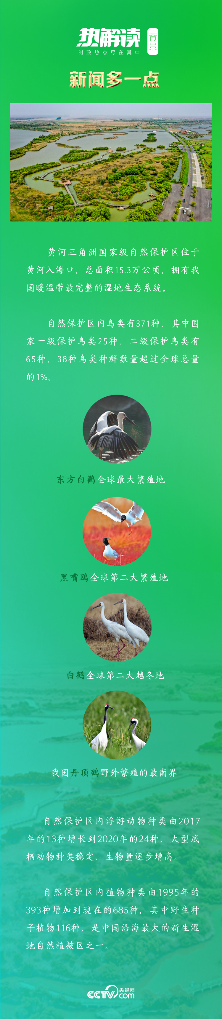 今日的黃河三角洲自然保護區(qū)生物多樣性更加豐富,野生動物、植物分別達到1630種、685種。全球首批“國際濕地城市”的稱號,是對東營市保護和修復(fù)黃河流域生態(tài)環(huán)境的褒獎。