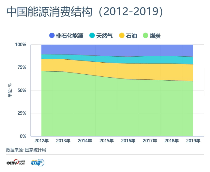 數(shù)據(jù)顯示,2019年我國煤炭消費(fèi)占能源消費(fèi)總量比重為57.7%,比2012年降低10.8個(gè)百分點(diǎn);天然氣、水電、核電、風(fēng)電等清潔能源消費(fèi)量占能源消費(fèi)總量比重為23.4%,比2012年提高8.9個(gè)百分點(diǎn)。