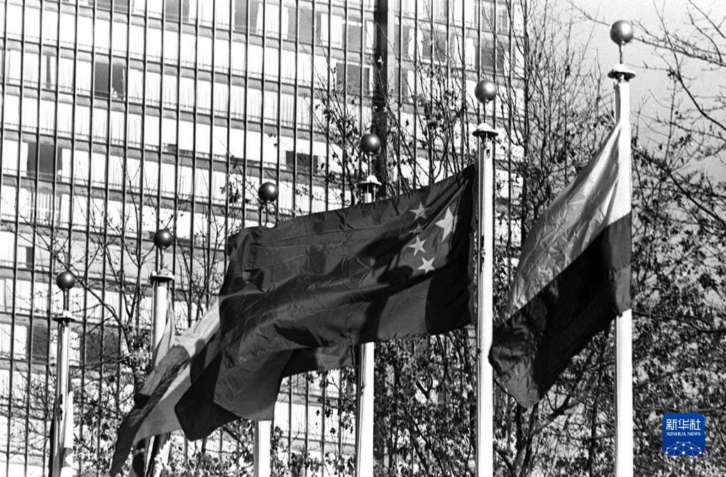 1971年10月25日,第26屆聯(lián)合國(guó)大會(huì)通過(guò)2758號(hào)決議:恢復(fù)中華人民共和國(guó)在聯(lián)合國(guó)的一切合法權(quán)利,并立即將蔣介石集團(tuán)的代表從聯(lián)合國(guó)及其所屬一切機(jī)構(gòu)中驅(qū)逐出去。從此,中華人民共和國(guó)的五星紅旗開始飄揚(yáng)在聯(lián)合國(guó)大廈前的廣場(chǎng)上(資料照片)。新華社發(fā)