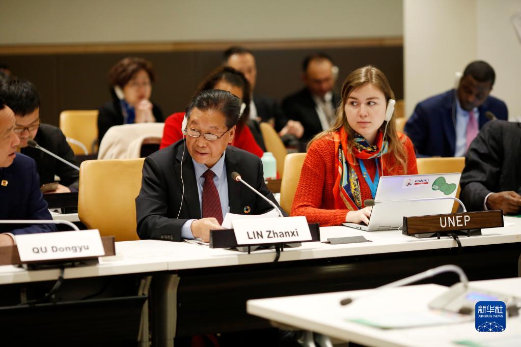 2020年4月18日,在位于紐約的聯(lián)合國(guó)總部,菌草技術(shù)發(fā)明人、福建農(nóng)林大學(xué)研究員林占熺(前排中)在“菌草技術(shù):‘一帶一路’倡議對(duì)促進(jìn)落實(shí)聯(lián)合國(guó)2030年可持續(xù)發(fā)展議程的實(shí)質(zhì)性貢獻(xiàn)”專題研討會(huì)上發(fā)言。菌草技術(shù)是來(lái)自中國(guó)福建省的一項(xiàng)技術(shù)。中國(guó)研究人員發(fā)現(xiàn),一些草本植物可替代木頭用于培育菌類,這就是菌草。菌草可被用于生產(chǎn)多種食品、飼料、肥料以及生物質(zhì)能源等,還可用于生態(tài)環(huán)境保護(hù)和治理。這項(xiàng)技術(shù)投入少,見效快,效益高。菌草已經(jīng)扎根100多個(gè)國(guó)家,“一帶一路”沿線的不少發(fā)展中國(guó)家朋友稱它是來(lái)自中國(guó)的“扶貧草”,有人干脆稱之為“中國(guó)草”。新華社記者 李木子 攝