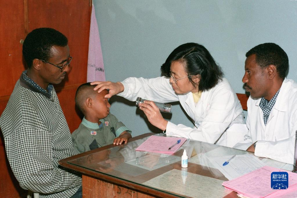 1998年,中國(guó)醫(yī)療隊(duì)隊(duì)長(zhǎng)曹曉燕和當(dāng)?shù)蒯t(yī)生一起給眼疾患兒檢查。由河南省派出的中國(guó)第9批援埃塞醫(yī)療隊(duì)于1996年8月赴埃塞俄比亞工作,他們以崇高的醫(yī)德、精湛的醫(yī)術(shù)贏得了當(dāng)?shù)厝嗣竦馁澴u(yù)。新華社記者 陳才林 攝
