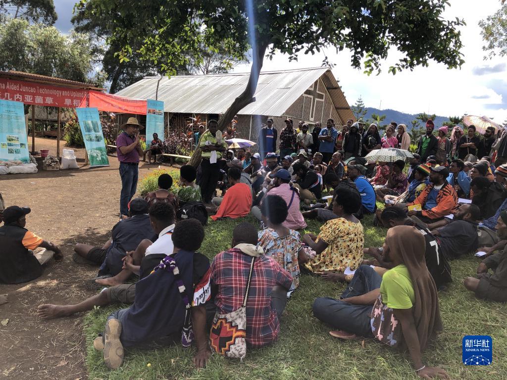 2020年12月15日,中國(guó)援巴布亞新幾內(nèi)亞菌草旱稻項(xiàng)目專家組組長(zhǎng)林應(yīng)興(戴草帽者)在巴布亞新幾內(nèi)亞?wèn)|高地省中國(guó)援助巴新菌草和旱稻技術(shù)項(xiàng)目第9期培訓(xùn)班上授課。新華社發(fā)