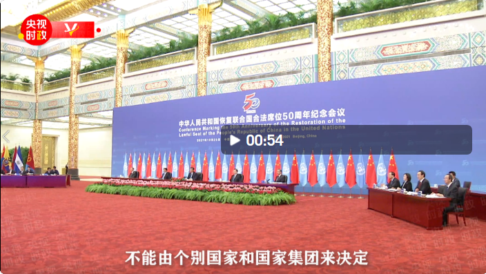 國家主席習(xí)近平25日在北京出席中華人民共和國恢復(fù)聯(lián)合國合法席位50周年紀(jì)念會(huì)議并發(fā)表重要講話。