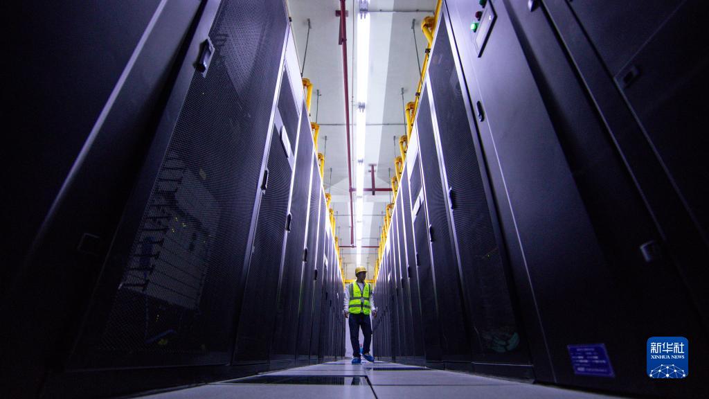 工作人員在中國移動貴州數(shù)據(jù)中心機房內(nèi)巡檢(5月24日攝)。新華社記者 歐東衢 攝