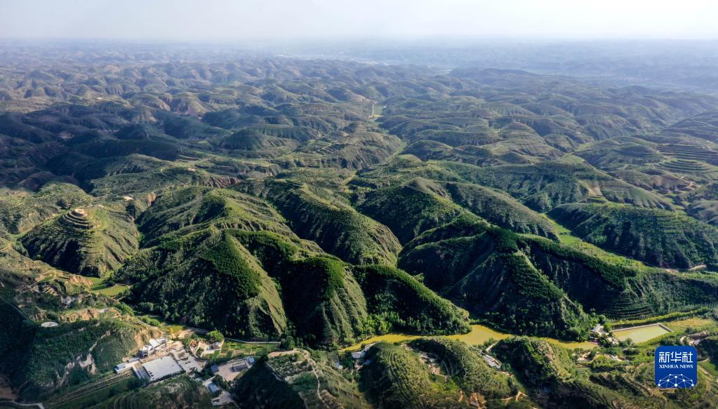 黃土溝壑中的陜西榆林市米脂縣銀州街道高西溝村滿眼綠色(9月10日攝,無人機照片)。新華社記者 陶明 攝