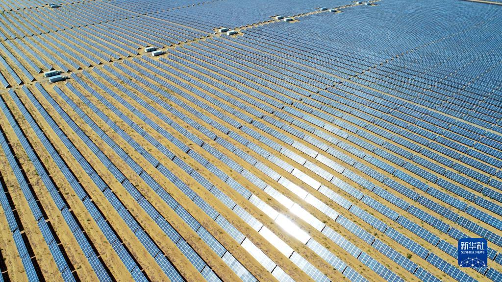這是寧夏中衛(wèi)市沙漠光伏產(chǎn)業(yè)園光伏電站(2018年9月7日,無人機照片)。新華社記者 王鵬 攝