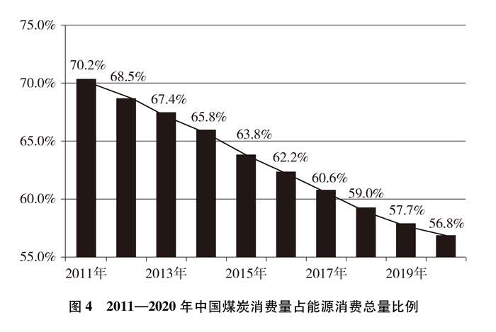 能源消費結構向清潔低碳加速轉化。為應對化石能源燃燒所帶來的環(huán)境污染和氣候變化問題,中國嚴控煤炭消費,煤炭消費占比持續(xù)明顯下降。2020年中國能源消費總量控制在50億噸標準煤以內(nèi),煤炭占能源消費總量比重由2005年的72.4%下降至2020年的56.8%。中國超額完成“十三五”煤炭去產(chǎn)能、淘汰煤電落后產(chǎn)能目標任務,累計淘汰煤電落后產(chǎn)能4500萬千瓦以上。截至2020年底,中國北方地區(qū)冬季清潔取暖率已提升到60%以上,京津冀及周邊地區(qū)、汾渭平原累計完成散煤替代2500萬戶左右,削減散煤約5000萬噸,據(jù)測算,相當于少排放二氧化碳約9200萬噸。