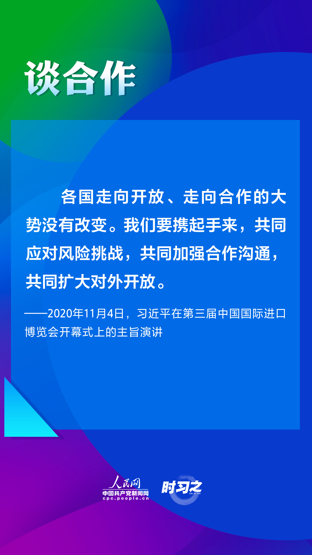 第四屆中國國際進(jìn)口博覽會(huì)將于2021年11月5日至10日在上海舉辦。2018年以來,習(xí)近平主席三次在進(jìn)博會(huì)上作主旨演講,為推動(dòng)建設(shè)開放型世界經(jīng)濟(jì)闡明中國主張。人民網(wǎng)·中國共產(chǎn)黨新聞網(wǎng)“時(shí)習(xí)之”欄目帶您重溫習(xí)近平主席重要講話。