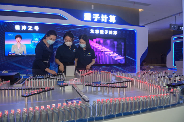 參會人員在合肥舉行的2021量子產(chǎn)業(yè)大會上參觀“九章”量子計算原型機模型(9月18日攝)。新華社記者 韓旭 攝