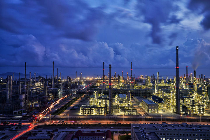 這是夜幕中的浙江舟山魚山島綠色石化基地(2020年9月27日攝)。新華社發(fā)(張帆 攝)