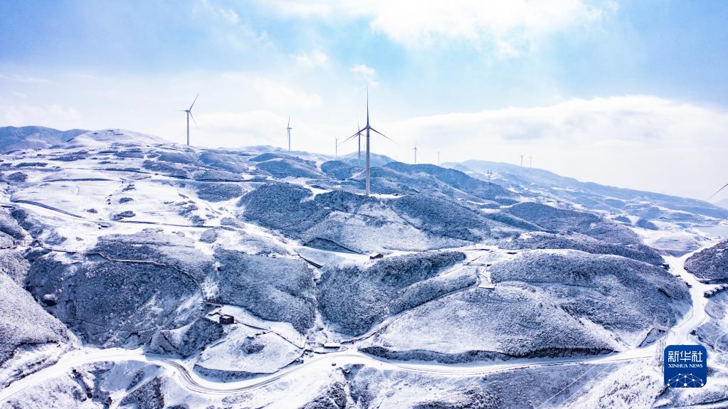 雪后的六盤水市盤州四格風電場(1月12日攝,無人機照片)。新華社記者 陶亮 攝