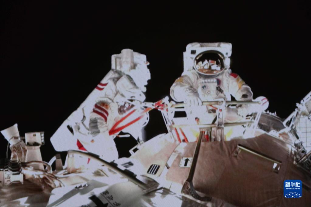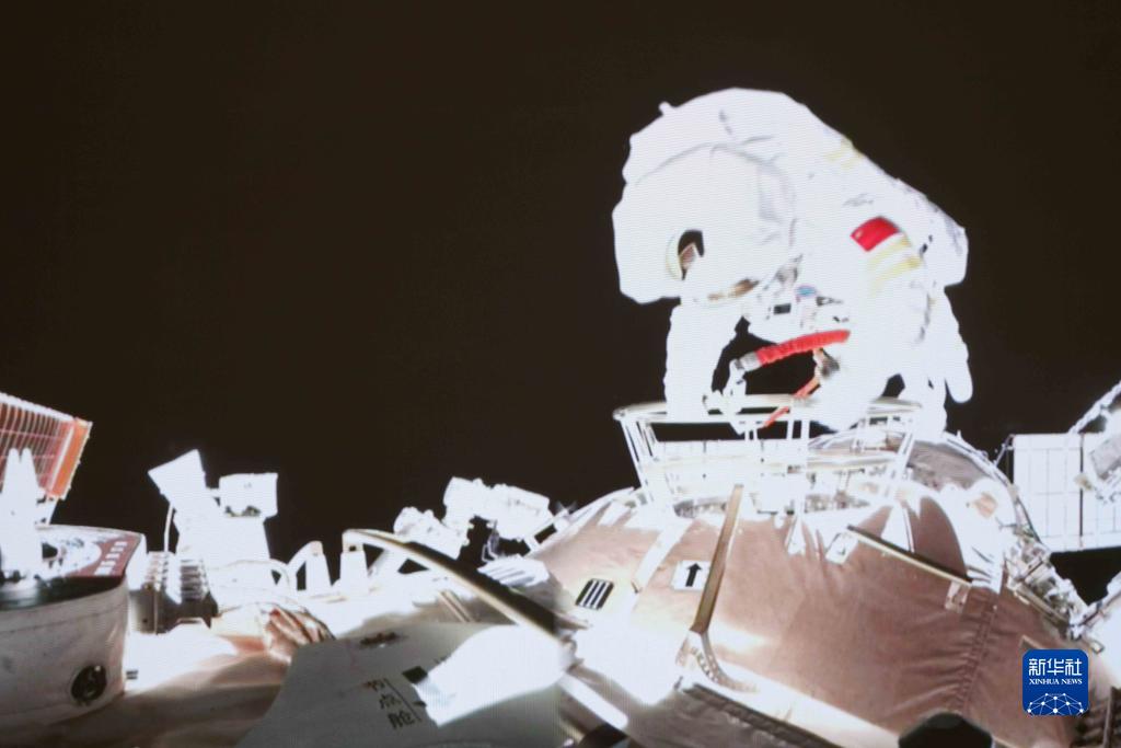 11月7日在北京航天飛行控制中心拍攝的神舟十三號航天員王亞平出艙畫面。新華社發(fā)(郭中正 攝)