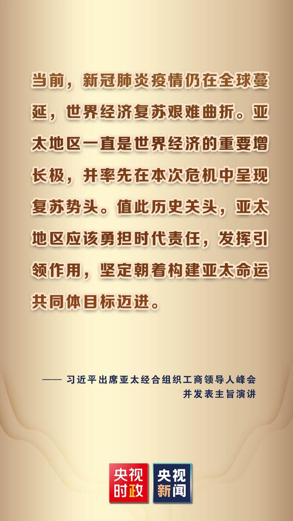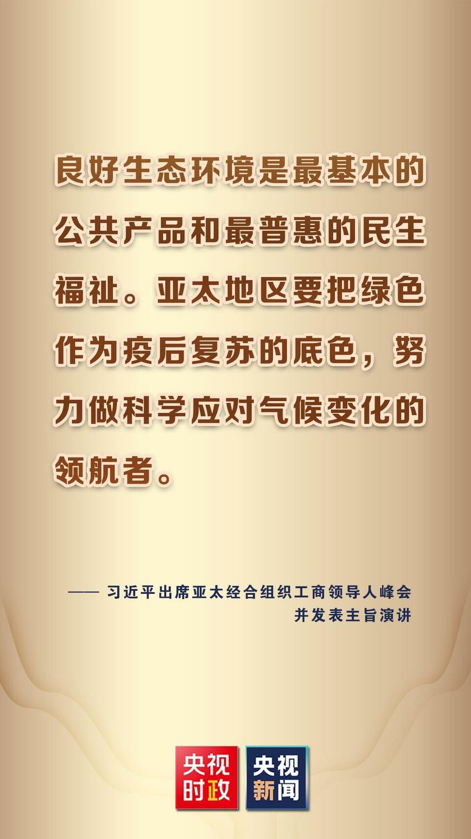 11月11日,國家主席習近平應邀在北京以視頻方式向亞太經(jīng)合組織工商領導人峰會發(fā)表題為《堅持可持續(xù)發(fā)展 共建亞太命運共同體》的主旨演講。