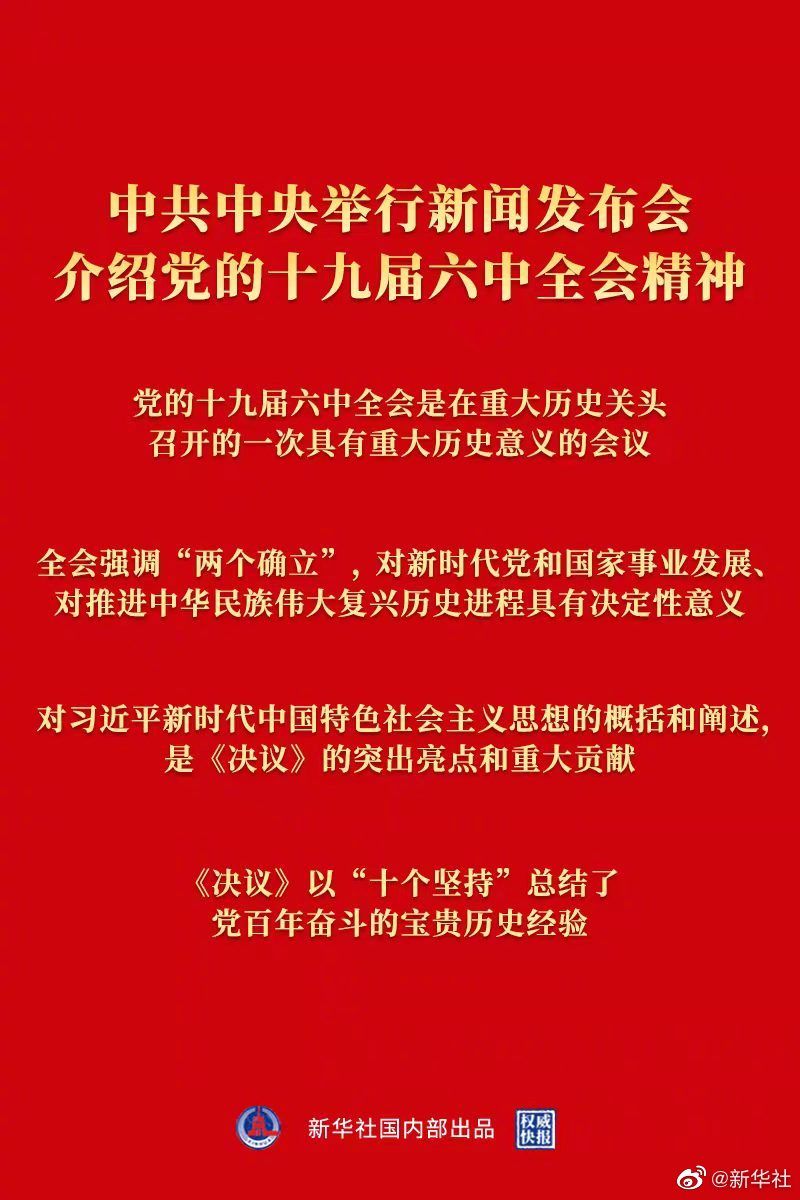 權(quán)威快報(bào)丨中共中央舉行新聞發(fā)布會介紹黨的十九屆六中全會精神