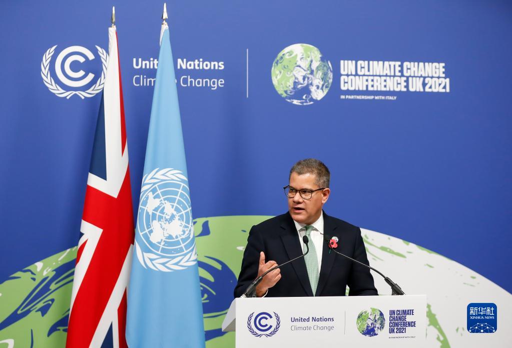 11月13日,在英國格拉斯哥舉行的《聯(lián)合國氣候變化框架公約》第26次締約方大會閉幕會后,大會主席夏爾馬在新聞發(fā)布會上發(fā)言。新華社記者韓巖攝
