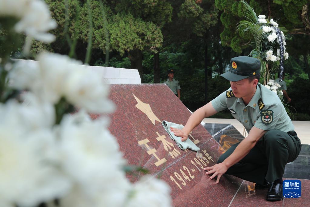 在王杰犧牲54周年前夕,陸軍第71集團(tuán)軍某合成旅“王杰班”組織祭掃(2019年7月10日攝)。新華社發(fā)(李志浩 攝)