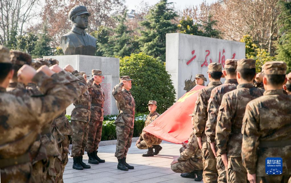 陸軍第71集團(tuán)軍某合成旅王杰生前所在連官兵組織黨員重溫入黨誓詞(2018年12月14日攝)。新華社發(fā)(白俊峰 攝)