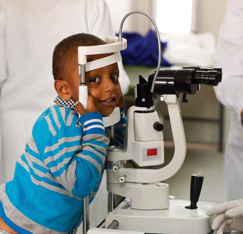 ↑ 2014年5月2日,在埃塞俄比亞首都亞的斯亞貝巴的阿勒特醫(yī)院,一名小朋友等待參加“光明行”活動的中國眼科專家為他看診。