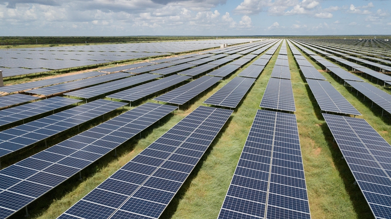 ↑ 這是2019年12月13日拍攝的中企承建的東非最大光伏電站——肯尼亞加里薩50兆瓦光伏發(fā)電站太陽能電池板。