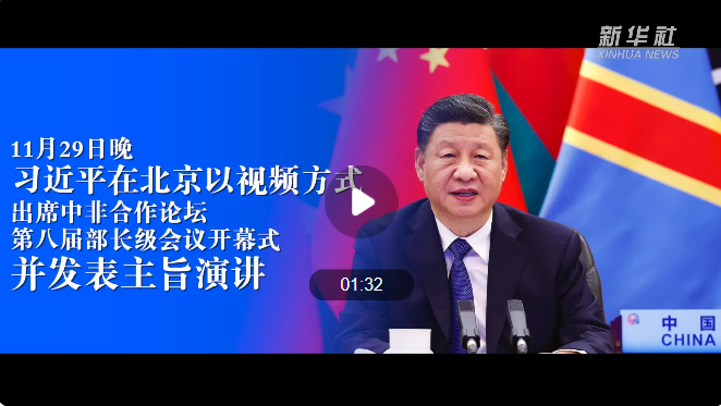 11月29日晚,國家主席習(xí)近平在北京以視頻方式出席中非合作論壇第八屆部長級會議開幕式。習(xí)近平發(fā)表主旨演講。