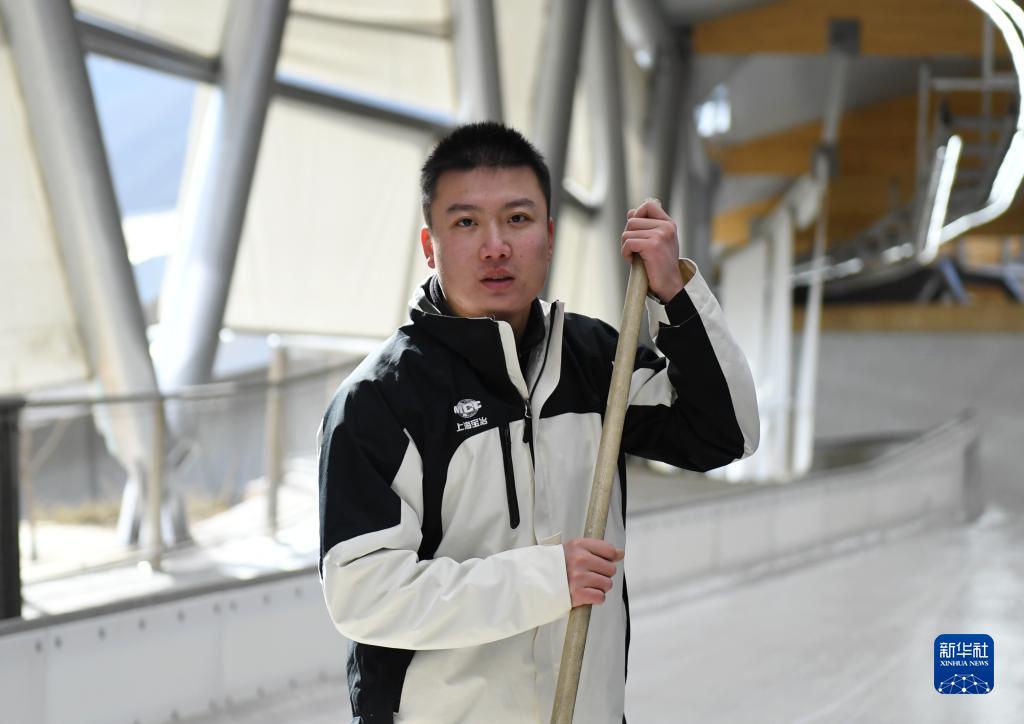 凌晨五點半,山野無聲。國家雪車雪橇中心制冰隊副隊長朱永濤穿著沖鋒衣,腳踩冰爪,手握修冰刀,迎著零下20攝氏度的山風,緊貼著冰面,把賽道平整度和光滑度手工打磨至最佳狀態(tài)。