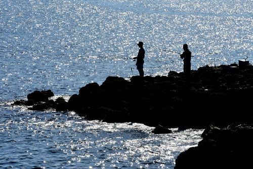 2019年8月28日,垂釣者在澎湖海岸邊釣魚。新華社記者朱祥攝