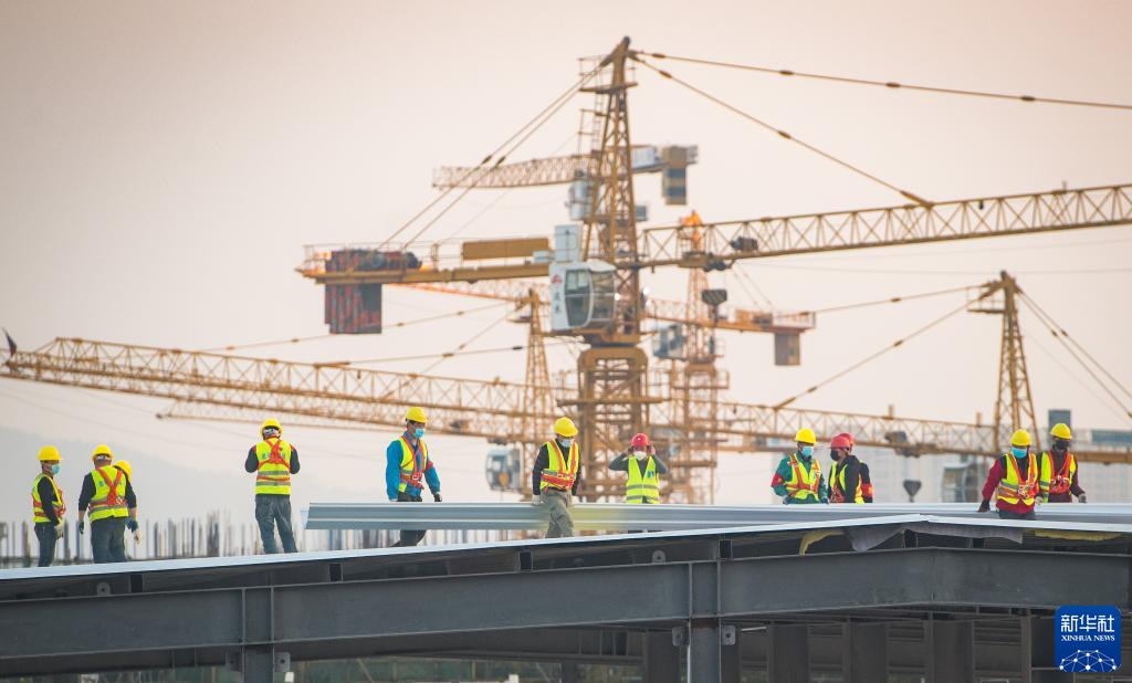 中建三局的建設(shè)工人在武漢雷神山醫(yī)院建設(shè)工地施工(2020年2月4日攝)。新華社記者 肖藝九 攝